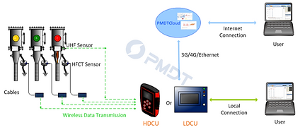 The PMDTiSmart HDCU obtains detection data from smart sensors wirelessly and uploads to the PMDTCloud or the software.